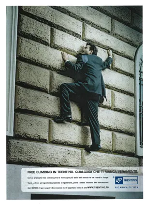 Il concept della nuova campagna cambia radicalmente: da esperienza nel territorio si focalizza sull’“Effetto Trentino” legato alle attività di free-climbing, trekking, windsurf e benessere che pervade e accompagna chi, dopo la vacanza, torna in città.