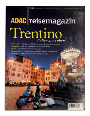 Nelle 160 pagine del volume n. 121 “Trentino, Italien ganz oben” che curiamo con ADAC, viene offerta un'ampia panoramica sulle eccellenze trentine, dai testimonial alla cultura e alle tradizioni, dall'enogastronomia tipica alle strutture ricettive, dai parchi naturali alle innumerevoli proposte per la pratica dello sport all'aria aperta, passando per laghi, castelli, proposte vacanze, minoranze linguistiche e molto altro, tra cui il ritiro estivo del FC Bayern sul Garda Trentino e una serie di approfondimenti.
