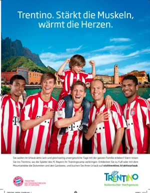 Viene distribuita ai 70.000 spettatori all’Allianz Arena di Monaco una brochure che descrive e promuove i ritiri estivi delle squadre del FC Bayern in Trentino.